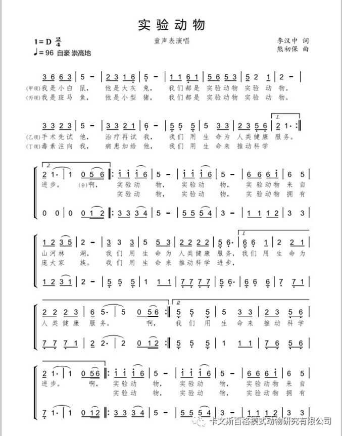 此次新冠肺炎給全球帶來(lái)巨大的災(zāi)難,所有人都盼望著疫苗早日研發(fā)成功,用于臨床并投入市場(chǎng)。而在此之前,疫苗都會(huì)進(jìn)入動(dòng)物試驗(yàn)階段,可以說(shuō)動(dòng)物是在用它們的生命守護(hù)人類的生命。在疫情期間,常州卡文斯實(shí)驗(yàn)動(dòng)物有限公司邀請(qǐng)中國(guó)音樂(lè)家協(xié)會(huì)會(huì)員、南京市音樂(lè)家協(xié)會(huì)理事熊初保和江蘇實(shí)驗(yàn)動(dòng)物工作者李漢中共同創(chuàng)作了這首《實(shí)驗(yàn)動(dòng)物》,音樂(lè)創(chuàng)作人周童編曲并錄制,由新北區(qū)三井實(shí)驗(yàn)小學(xué)的同學(xué)們演唱而共同完成這首公益作品。